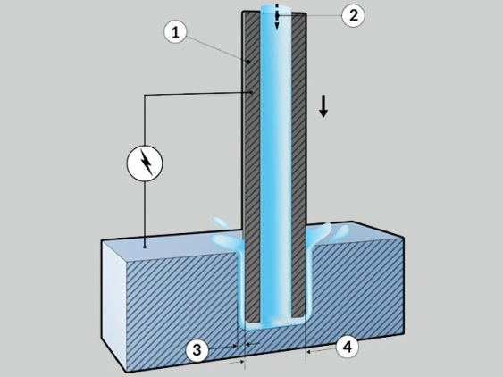 Hole drilling EDM creates small and deep holes with high aspect ratios using a tubular electrode made from brass, copper, or tungsten. It can drill a hole with a diameter from 0.1 to 3 mm, and height up to 1m. So, use hole drilling EDM where small or intricate holes are impossible with conventional drilling.