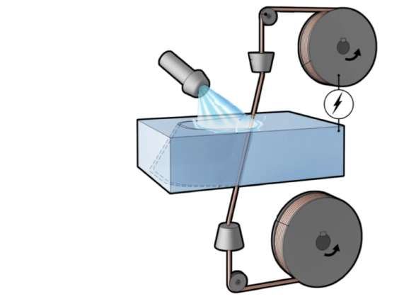 Wire cut EDM uses copper wire electrodes of thickness varying from 0.02 to 0.3 mm. The wire electrode is continuously fed from the automatic feeder with the spool throughout processing. It is used for machining hardened metal and alloys, which are challenging with other machining operations such as drilling and punching.