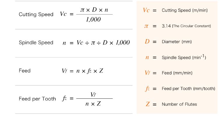 Calculating feed rate and spindle speed. Source