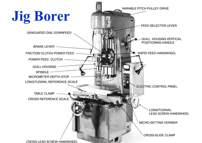 If we look at the construction of a jig borer vs milling machine, the optical scale in a jig borer provides precise measurement. It gives feedback to the system to adjust it for better tolerances. The table below shows the fundamental differences between a milling machine and a jig borer.